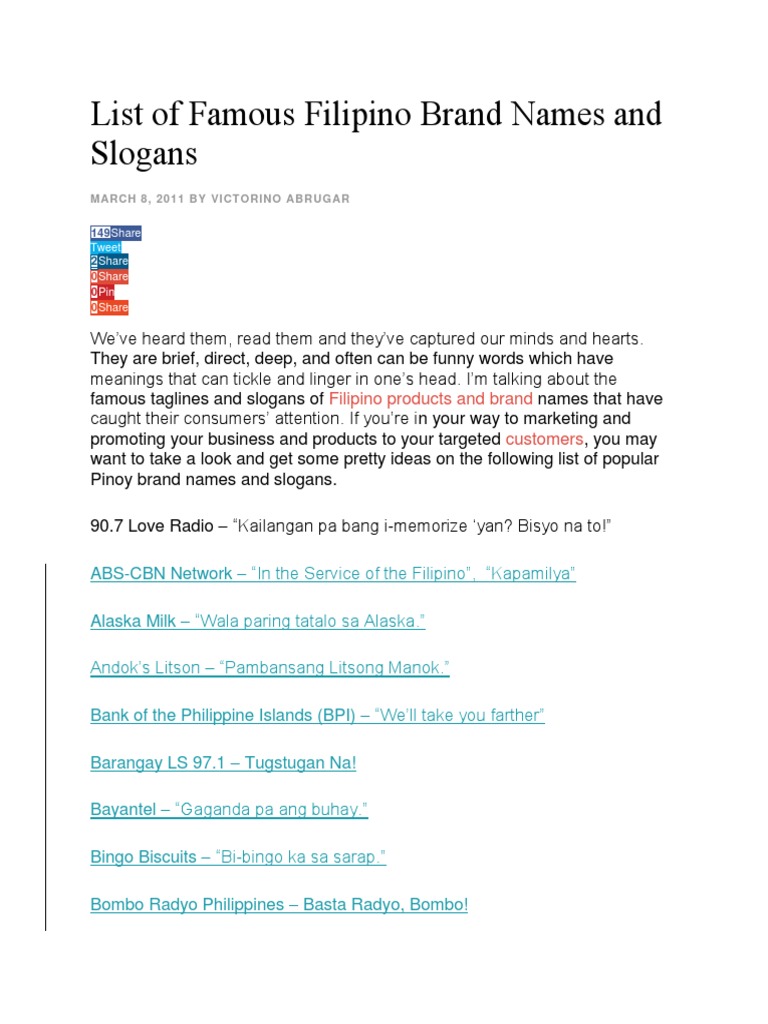 Filipino Brand Slogans Advertising Slogans Famous Slogans Slogans List